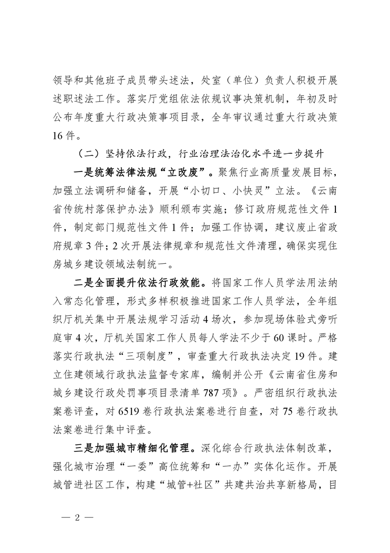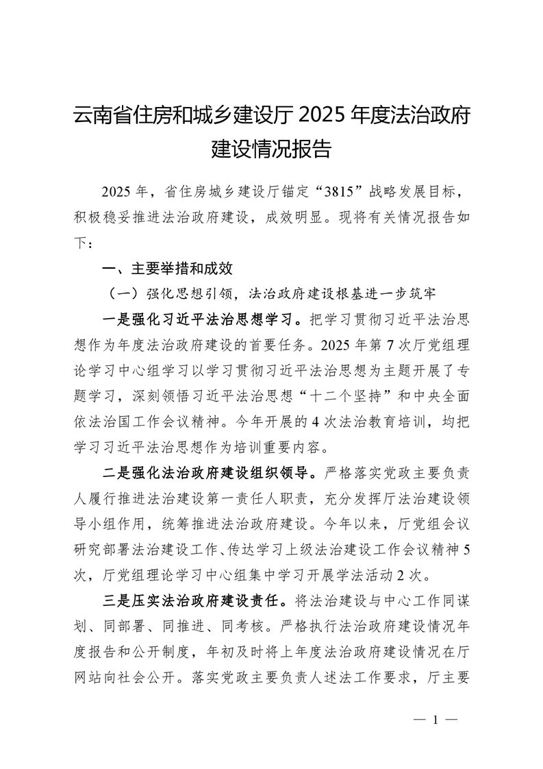 云南省住房和城乡建设厅2025年度法治政府建设情况报告