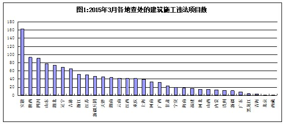 2015年3月,各地排查建筑工程项目43405个,比上月增加65.0%,涉及31119家建设单位、32753家施工企业,分别比上月增加60.8%、56.4%。