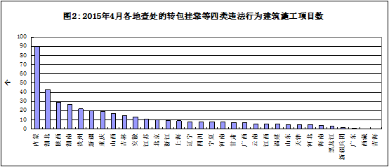 现将2015年4月份各地住房城乡建设主管部门上报查处的建筑施工转包违法分包等违法行为情况通报如下: