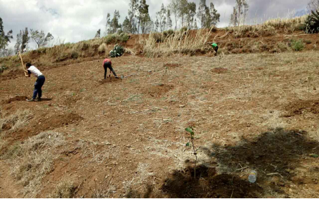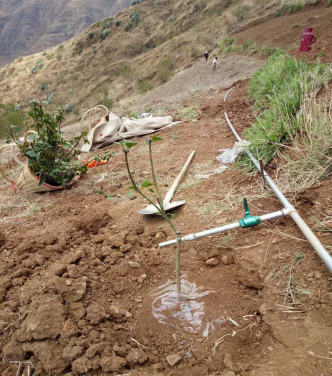 灌溉用水到地,贫困群众开始栽种芒果苗