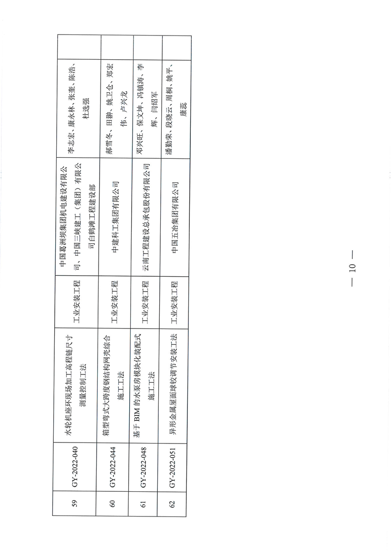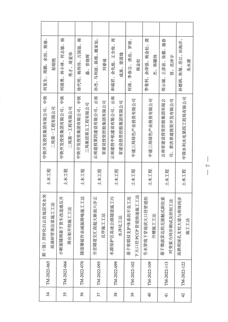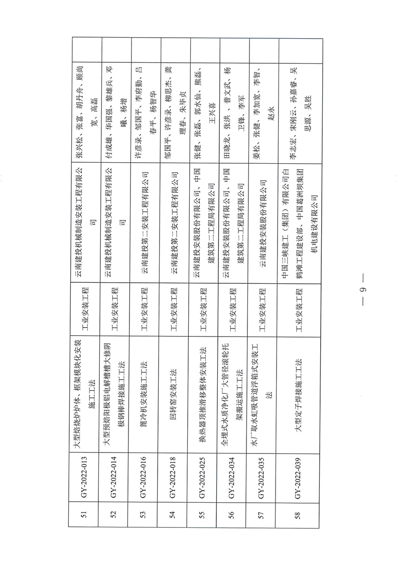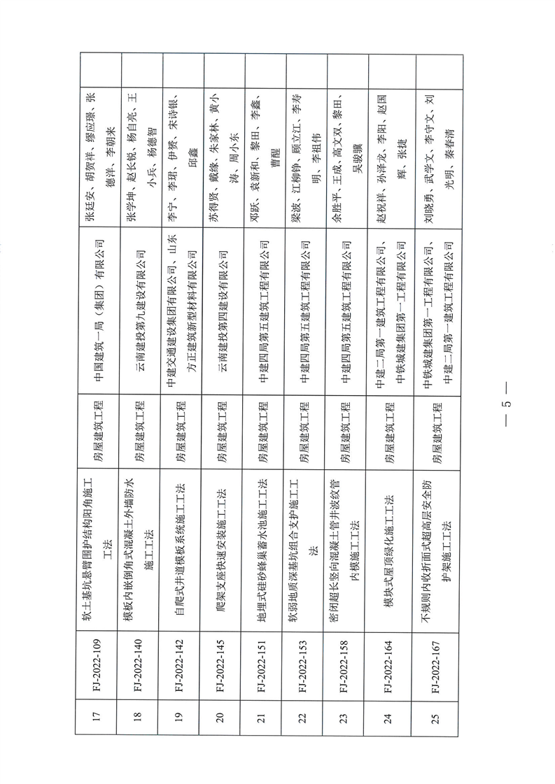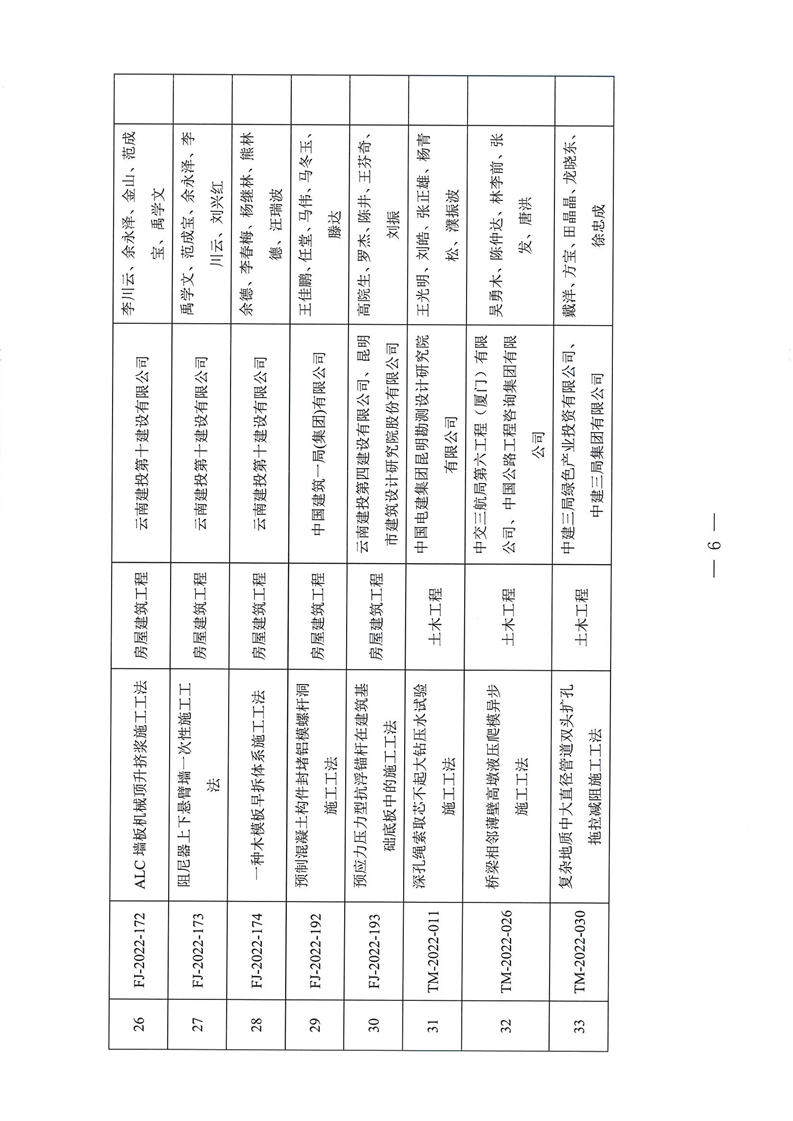 云南省住房和城乡建设厅关于2022年度云南省省级工程建设工法名单的公示