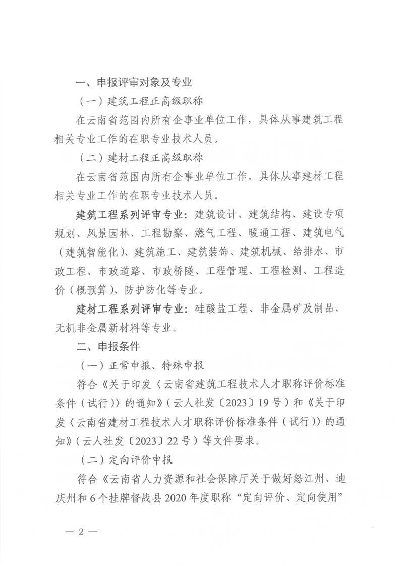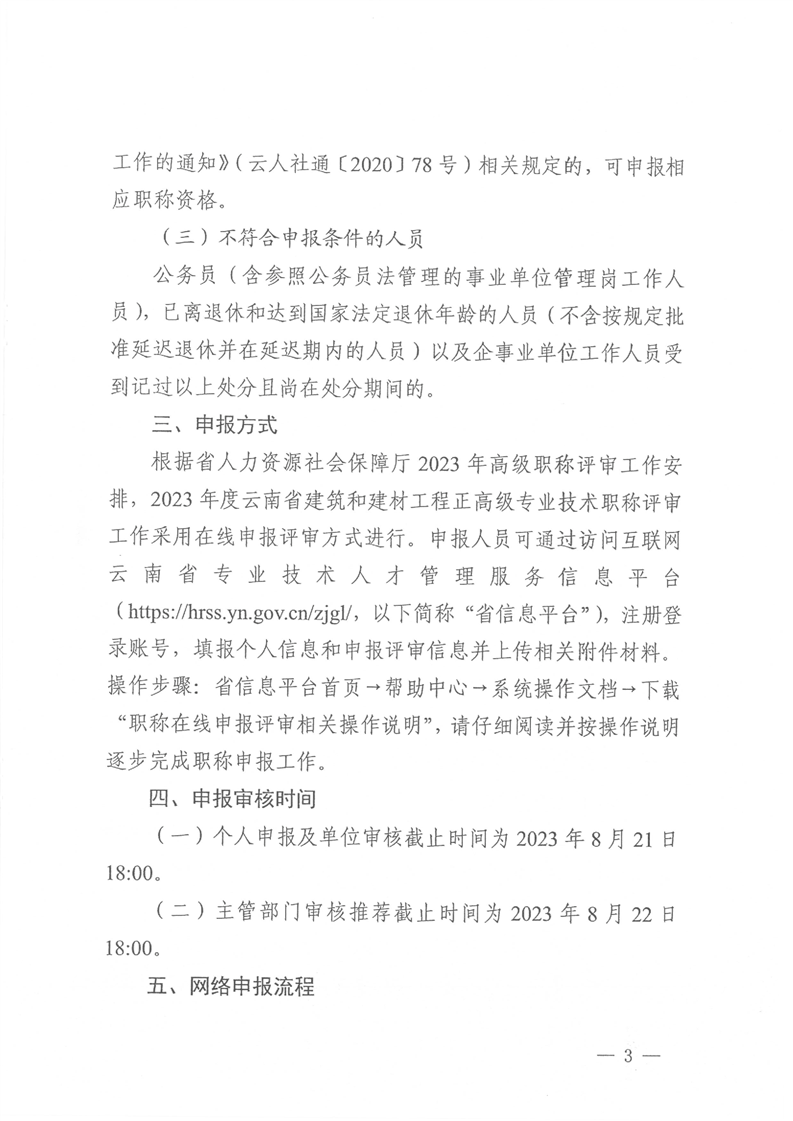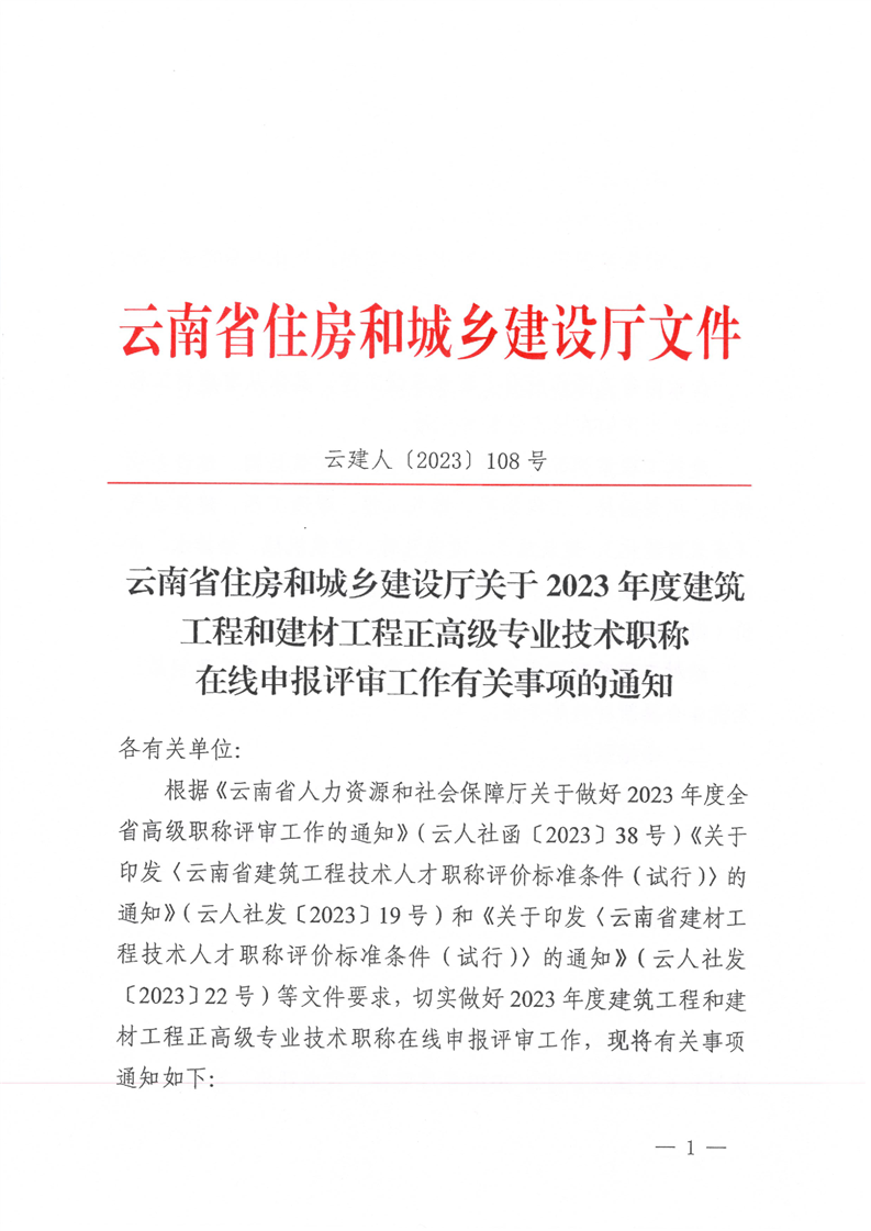 云南省住房和城乡建设厅关于2023年度建筑工程和建材工程正高级专业技术职称在线申报有关事项的通知