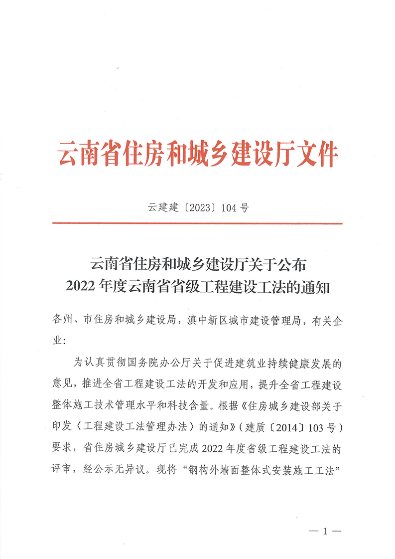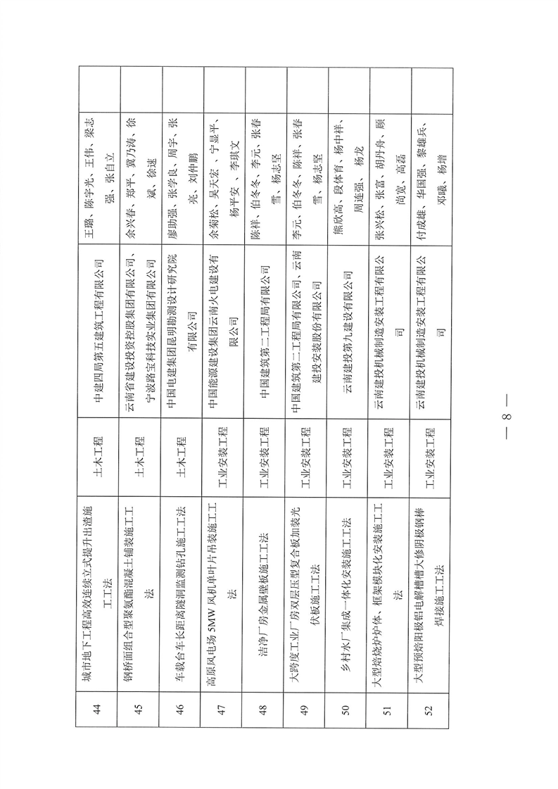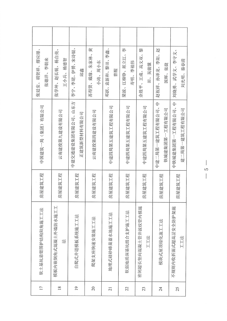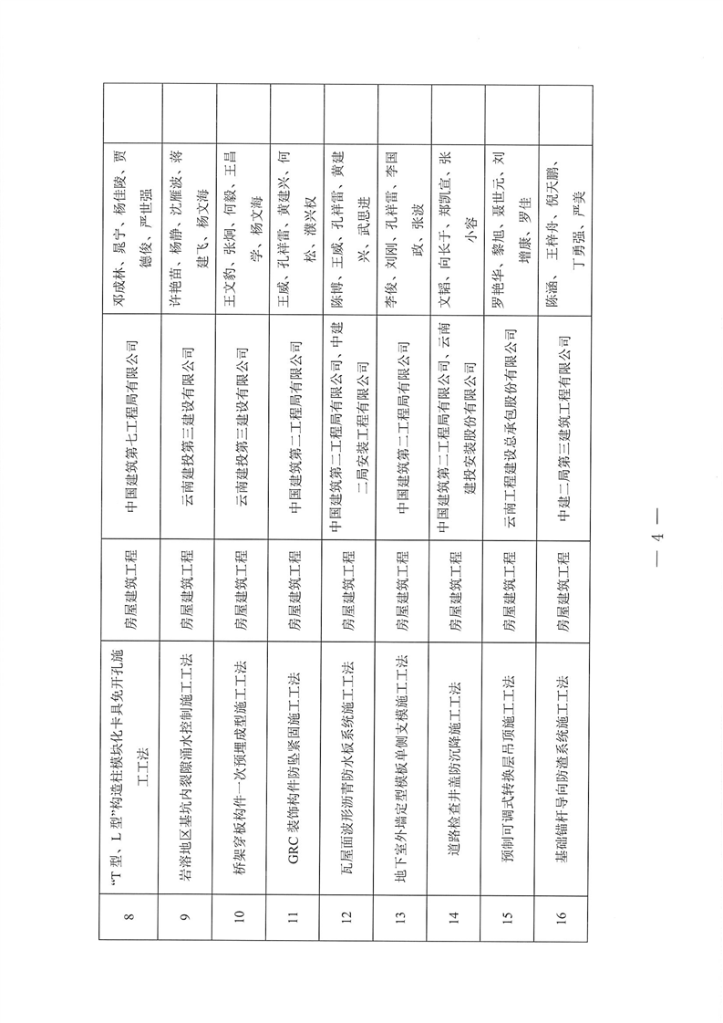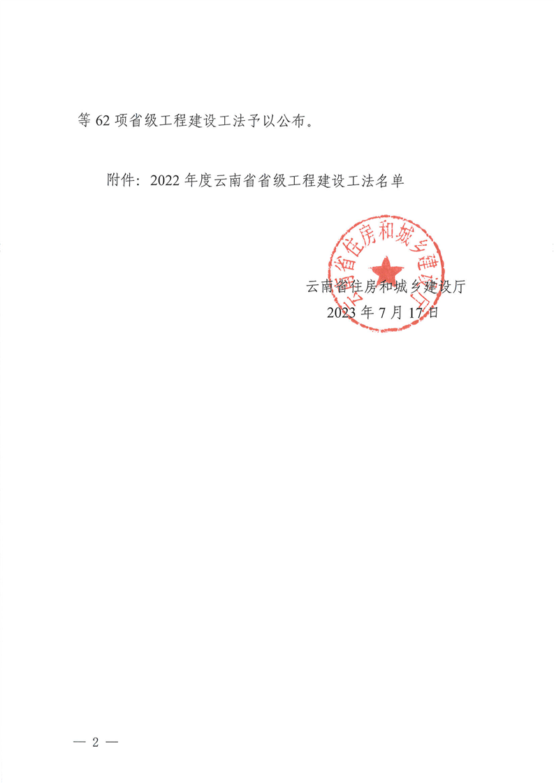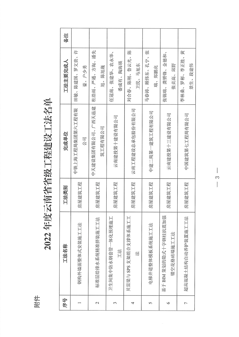 云南省住房和城乡建设厅关于公布2022年度云南省省级工程建设工法的通知
