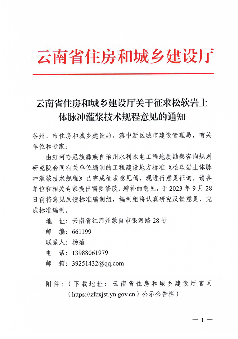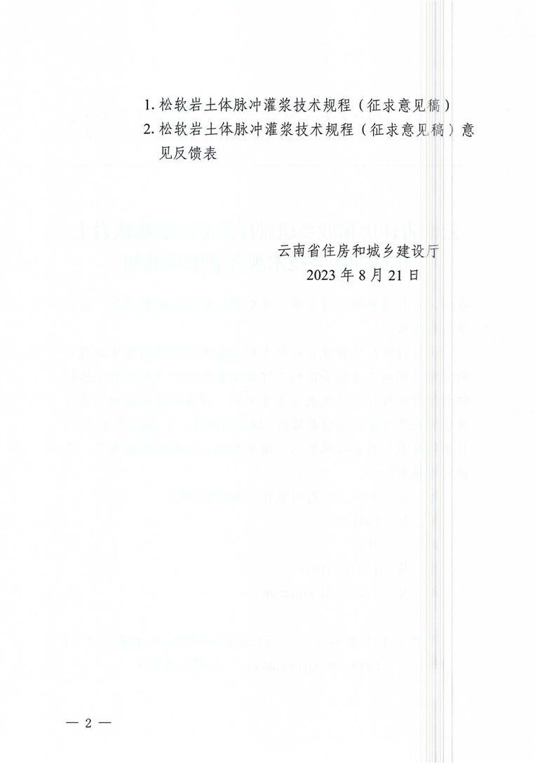 关于征求松软岩土体脉冲灌浆施工技术规程意见的通知