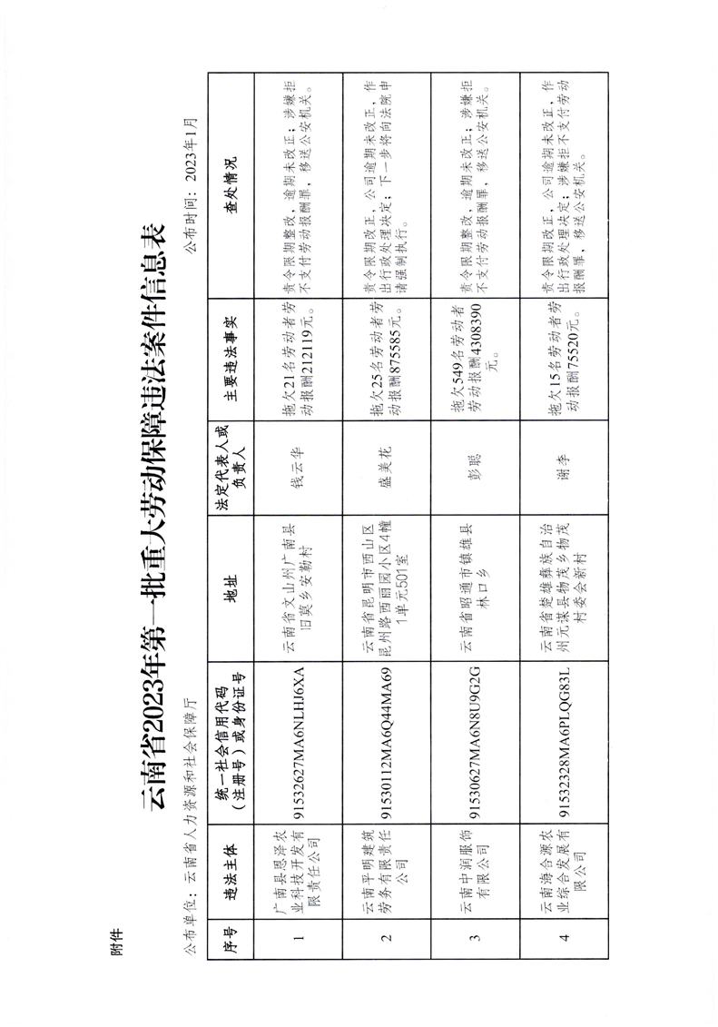 云南省2023年第一批重大劳动保障违法案件信息表.xls