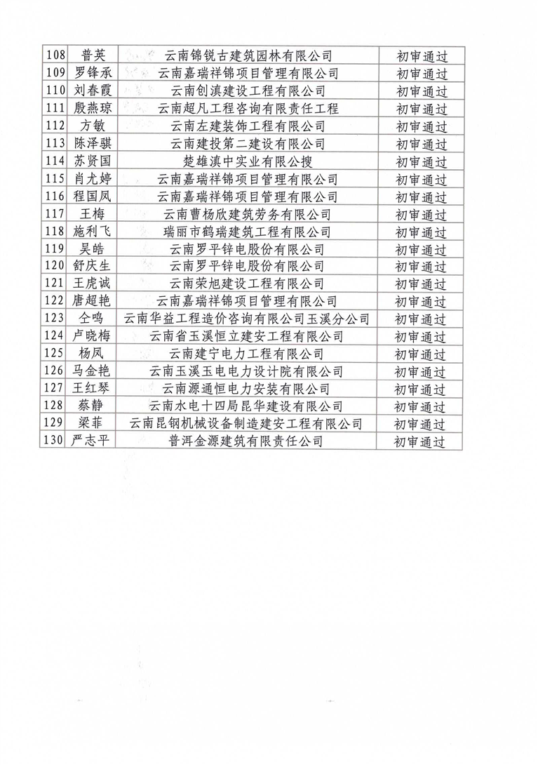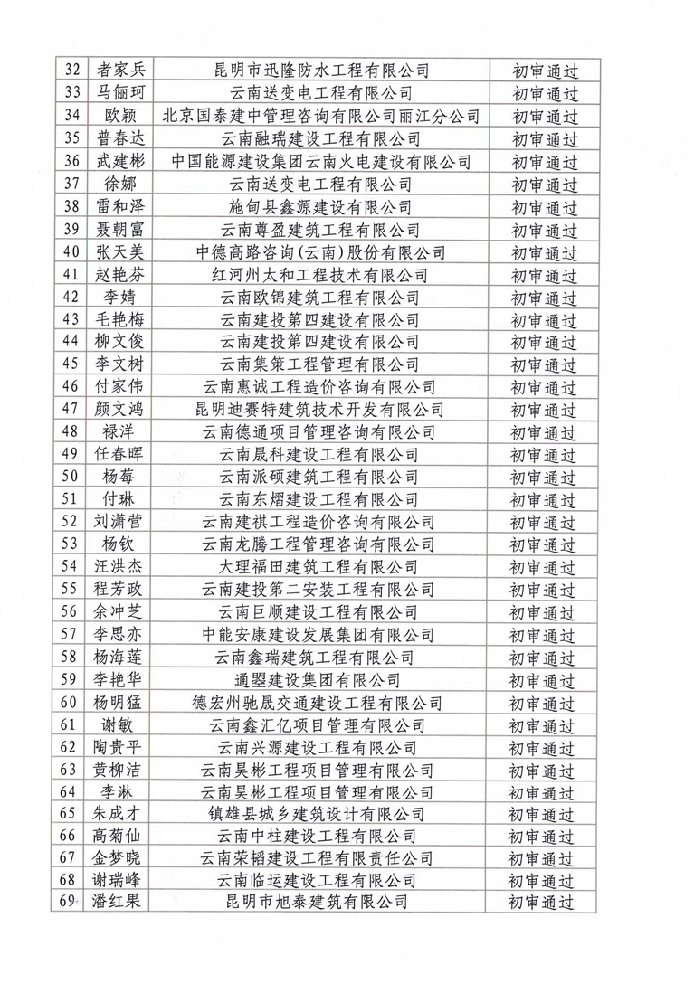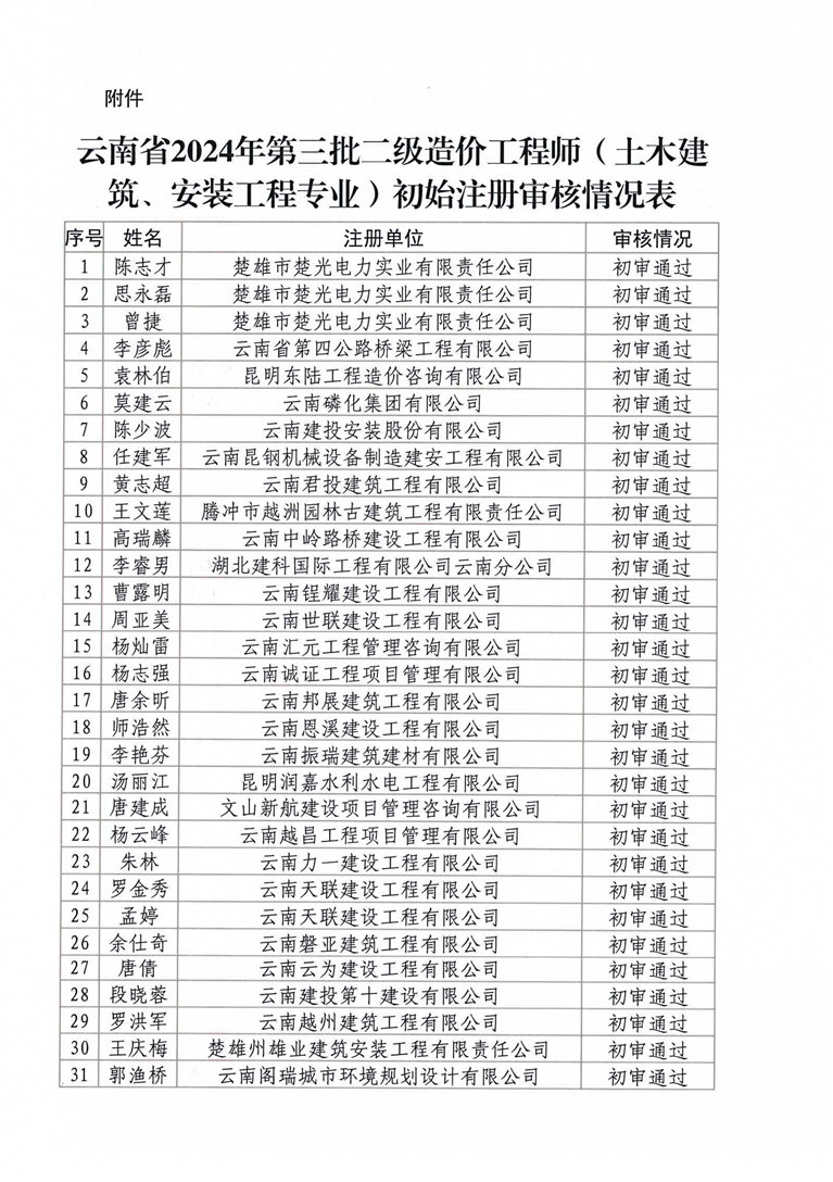 云南省住房和城乡建设厅关于云南省2024年第三批二级造价工程师(土木建筑、安装工程专业)初始注册审核的公示