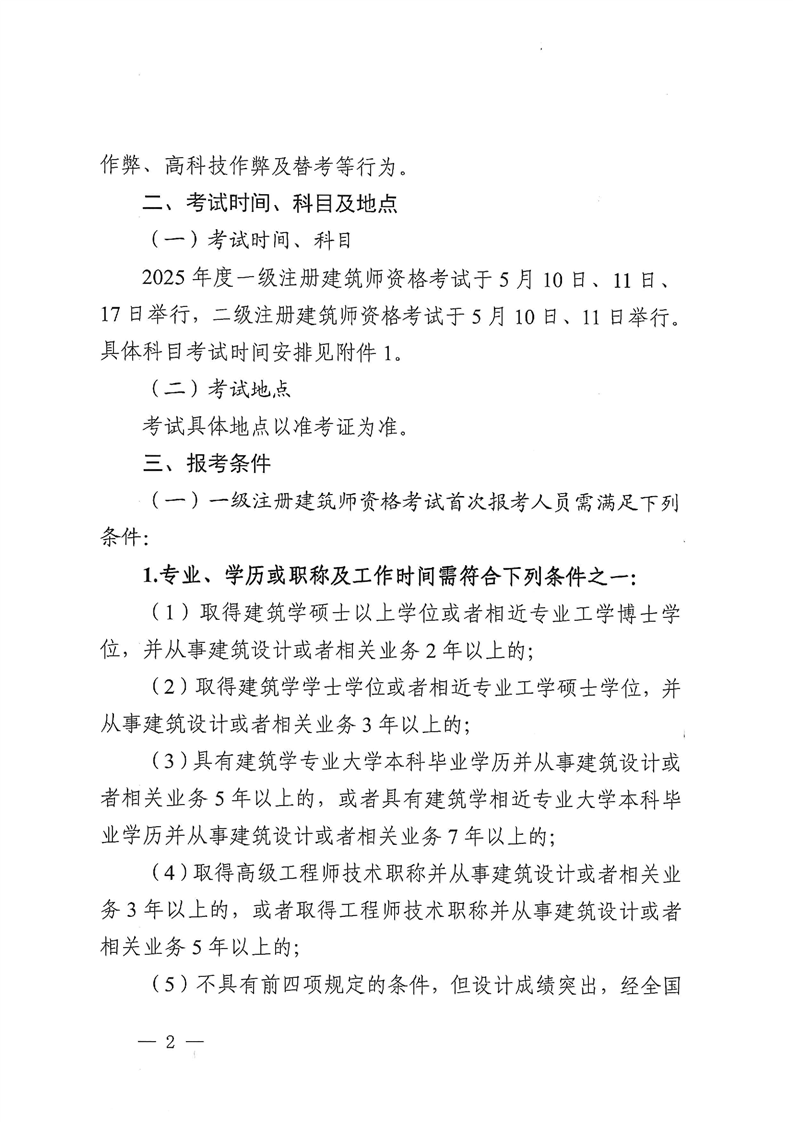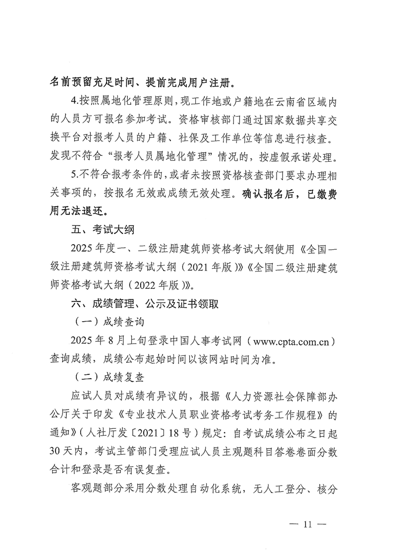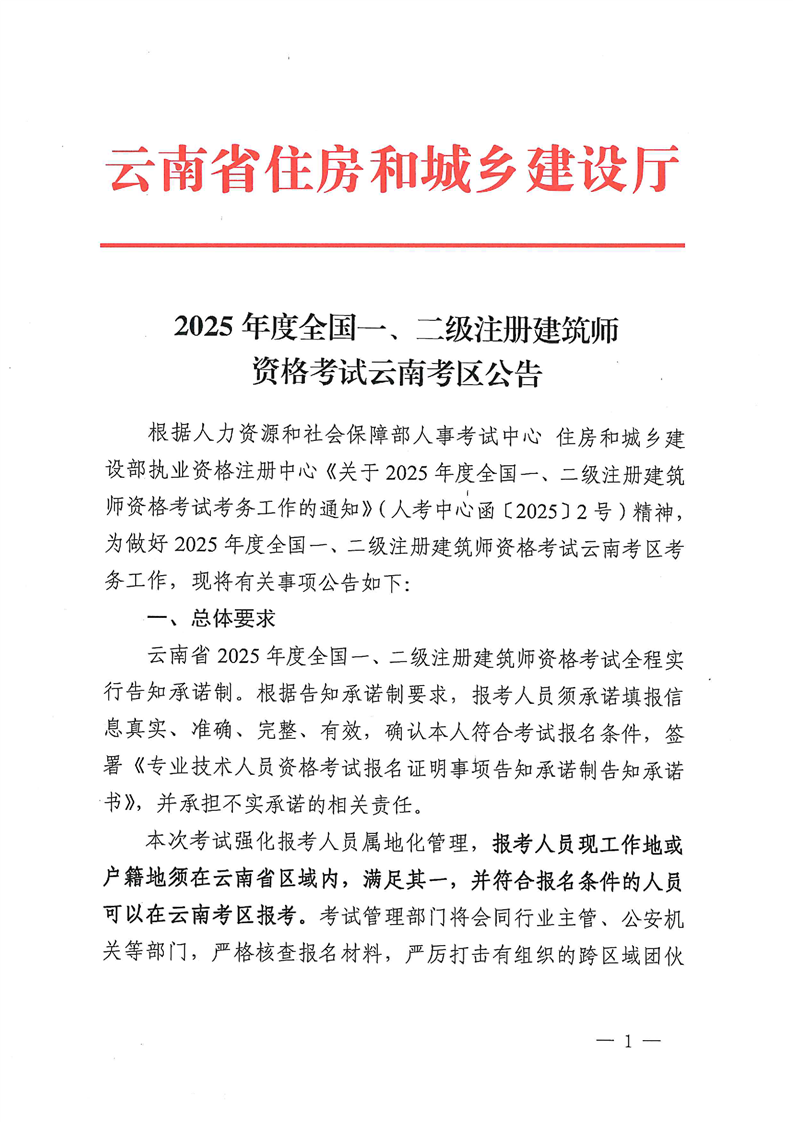 2025年度全国一、二级注册建筑师资格考试云南考区公告