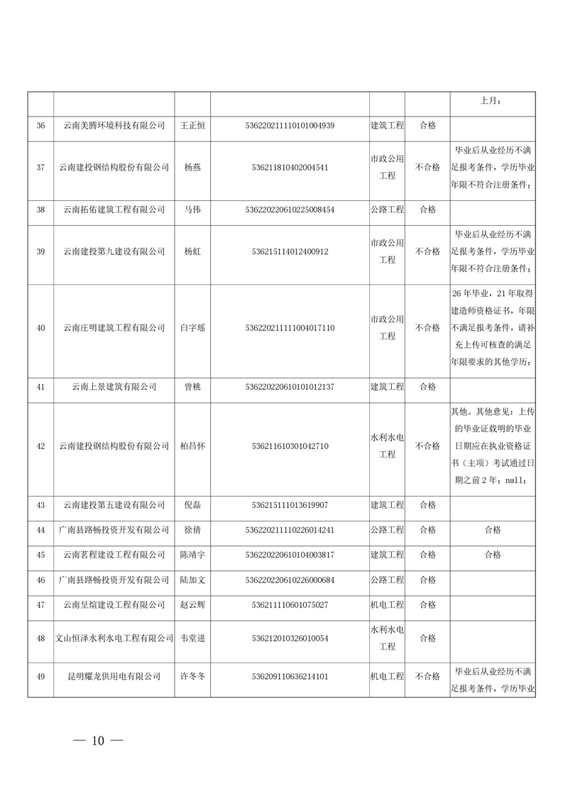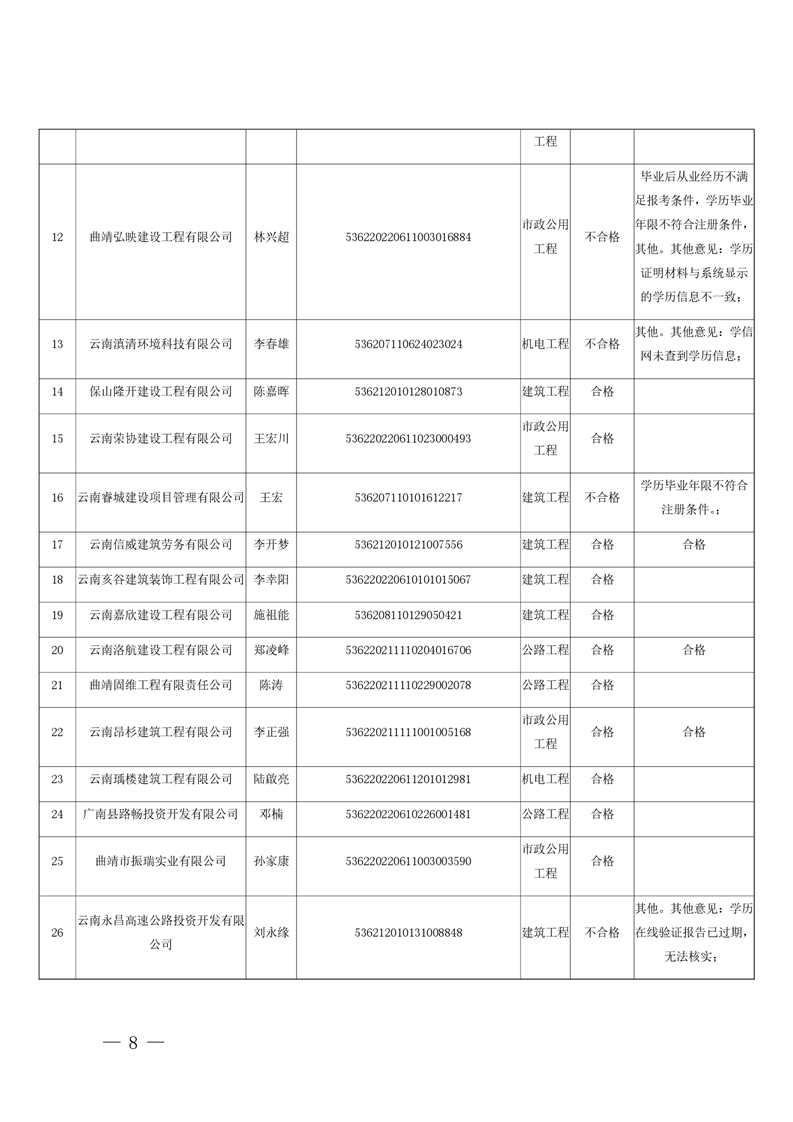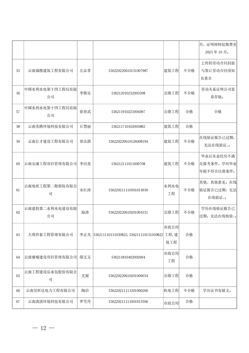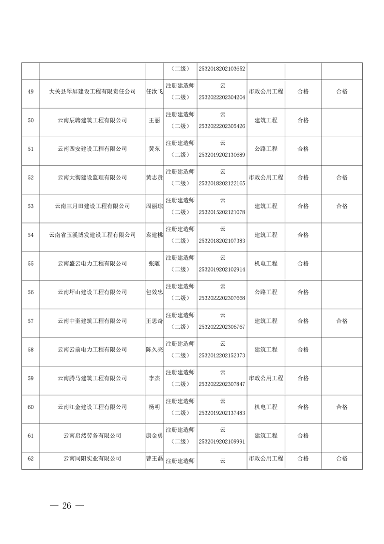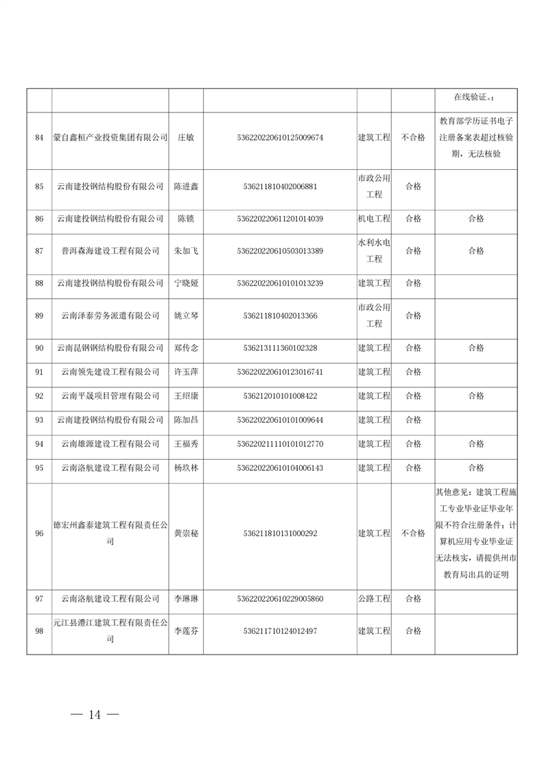 云南省住房和城乡建设厅关于云南省2026年第5批二级建造师初始注册重新注册延续注册人员专家审查意见的公示
