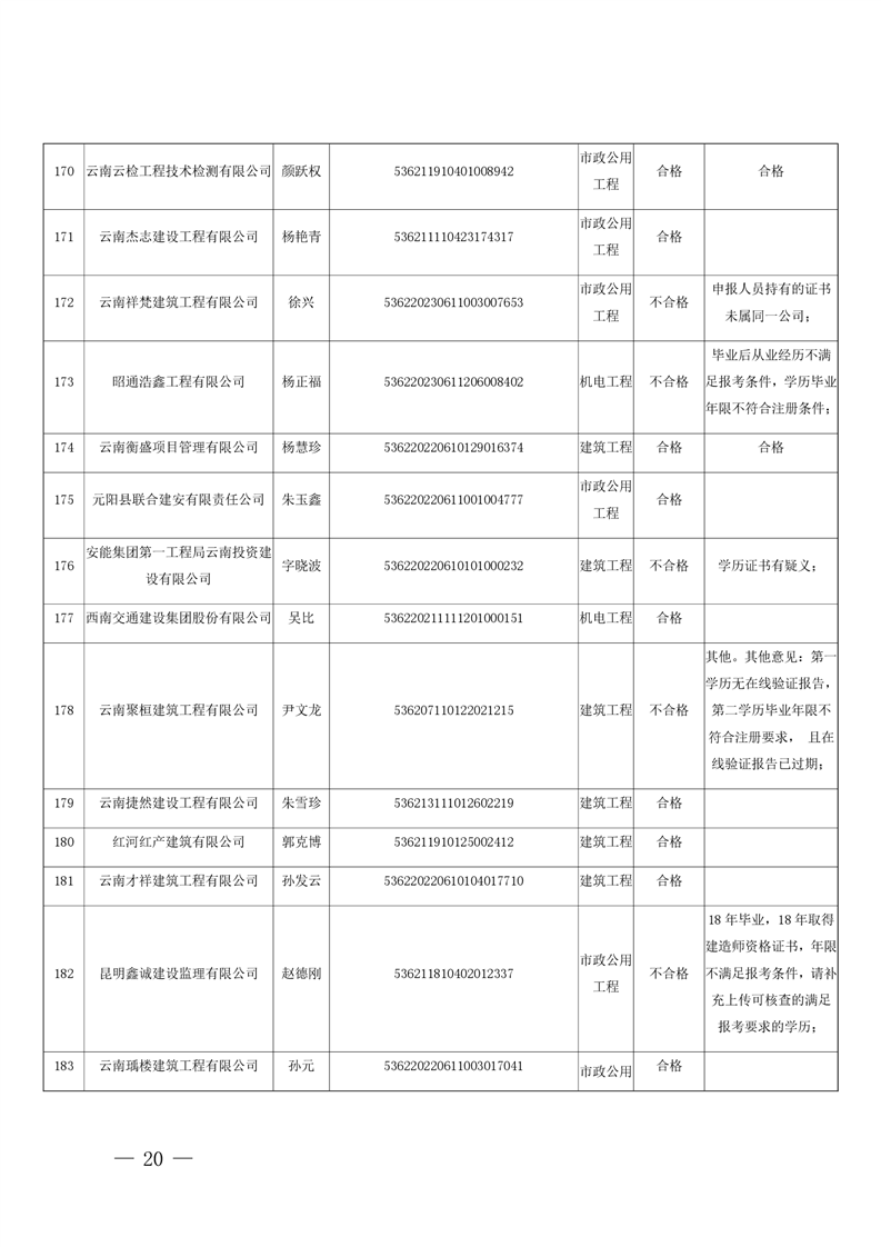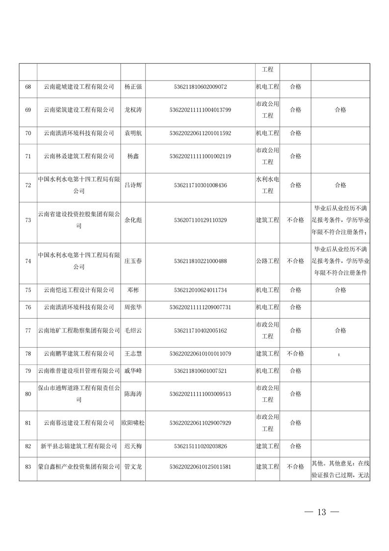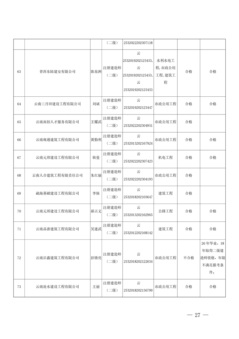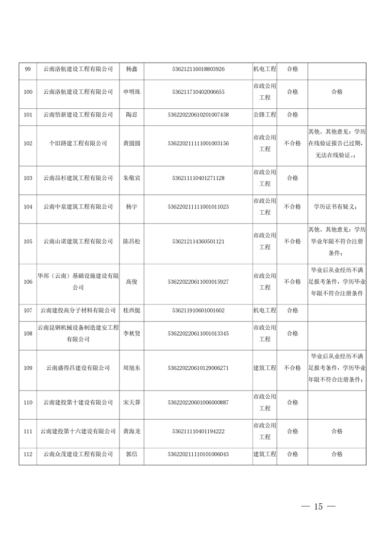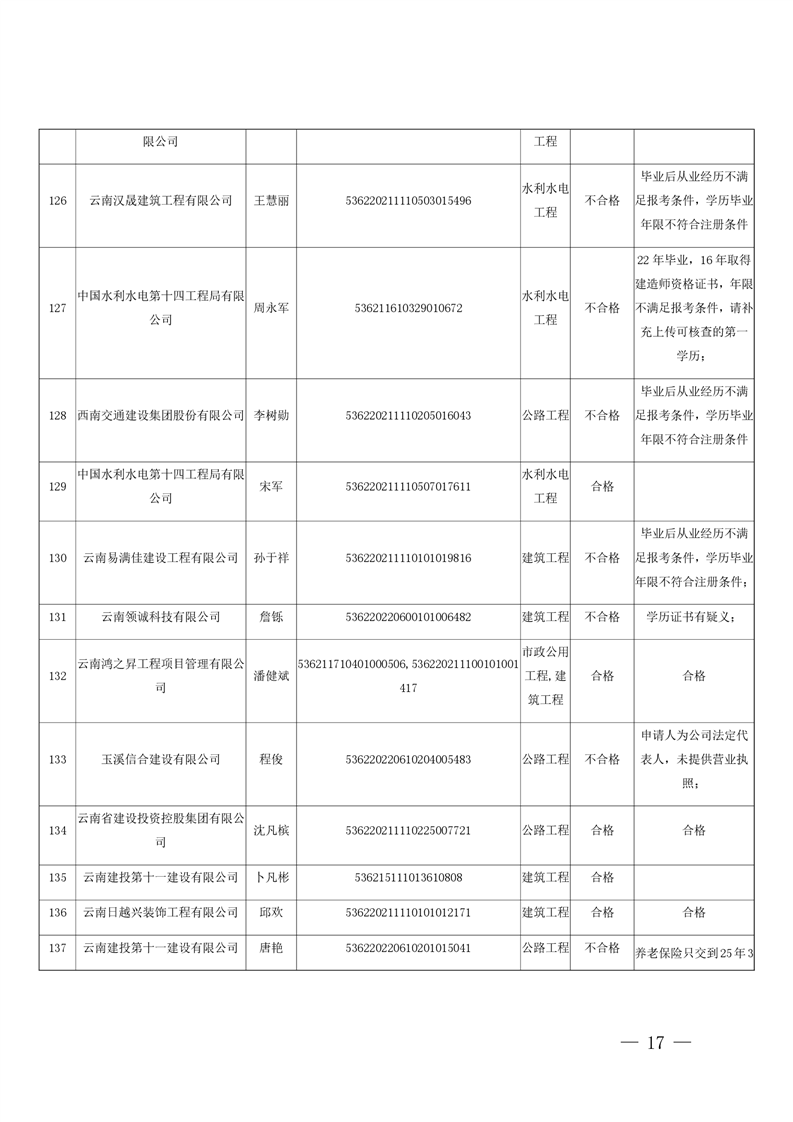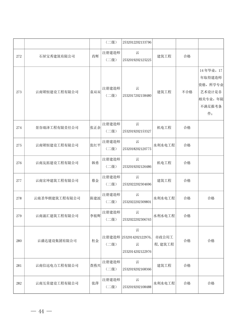 云南省住房和城乡建设厅关于云南省2026年第5批二级建造师初始注册重新注册延续注册人员专家审查意见的公示