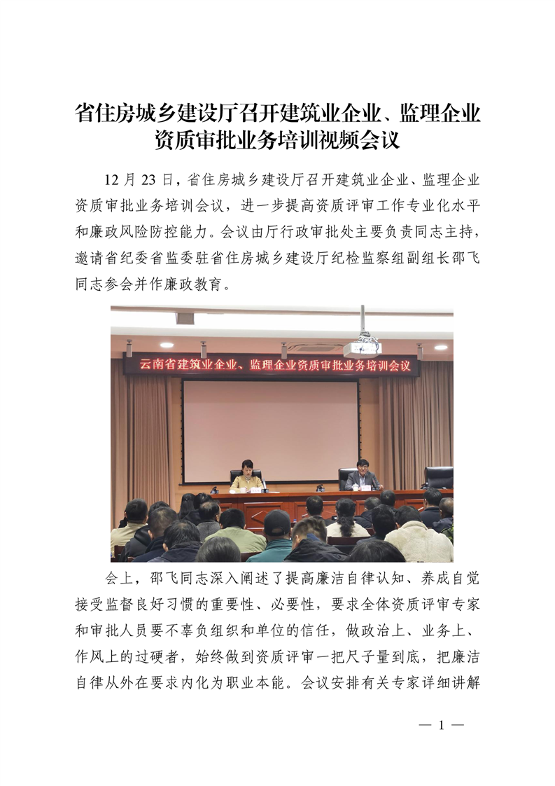 省住房城乡建设厅召开建筑业企业、监理企业资质审批业务培训视频会议