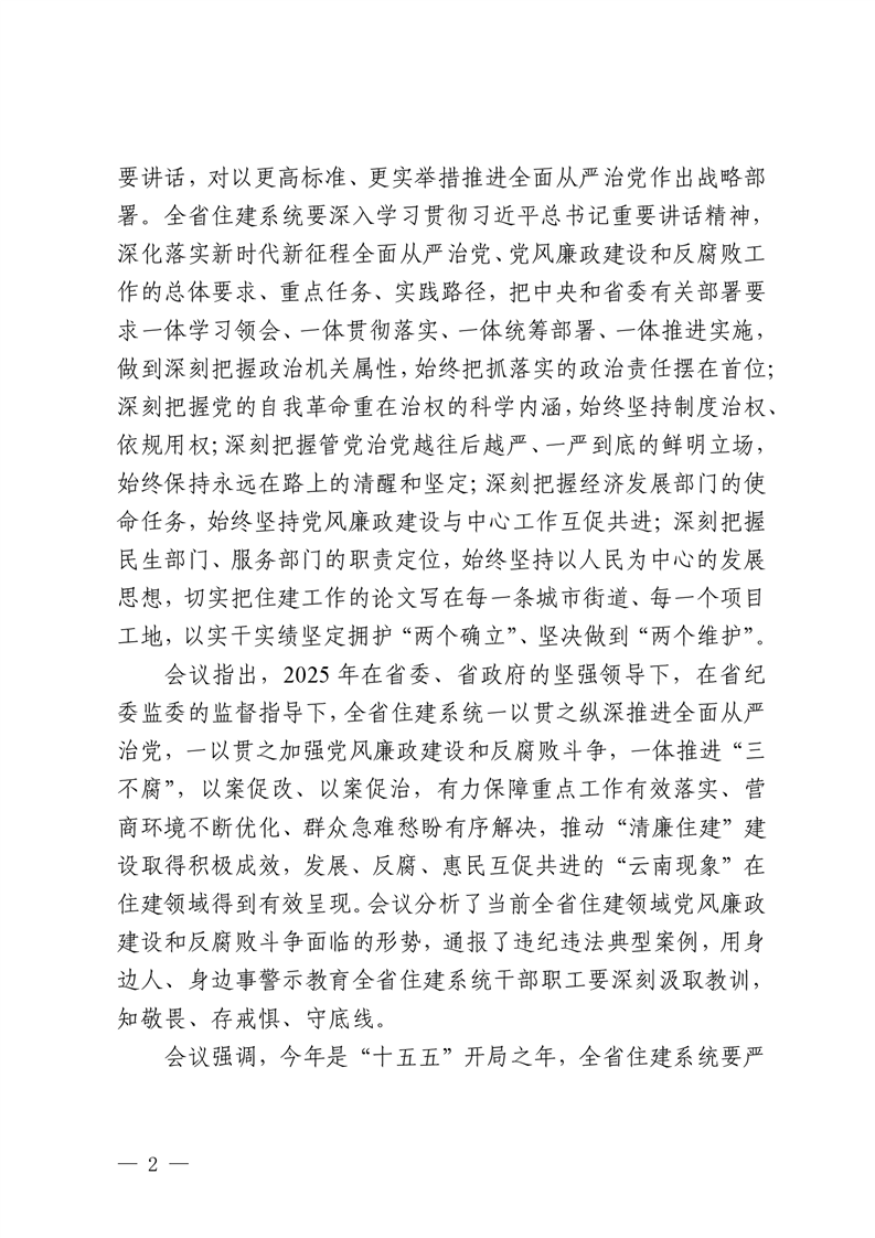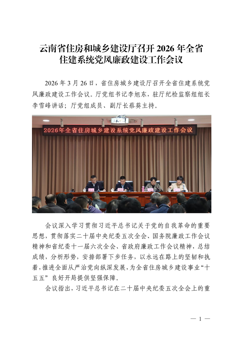 云南省住房和城乡建设厅召开2026 年全省住建系统党风廉政建设工作会议