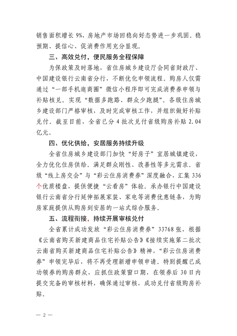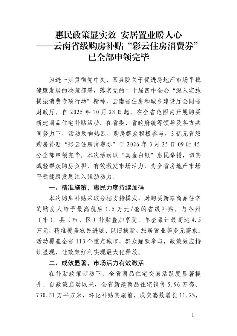 惠民政策显实效 安居置业暖人心—云南省级购房补贴“彩云住房消费券”已全部申领完毕