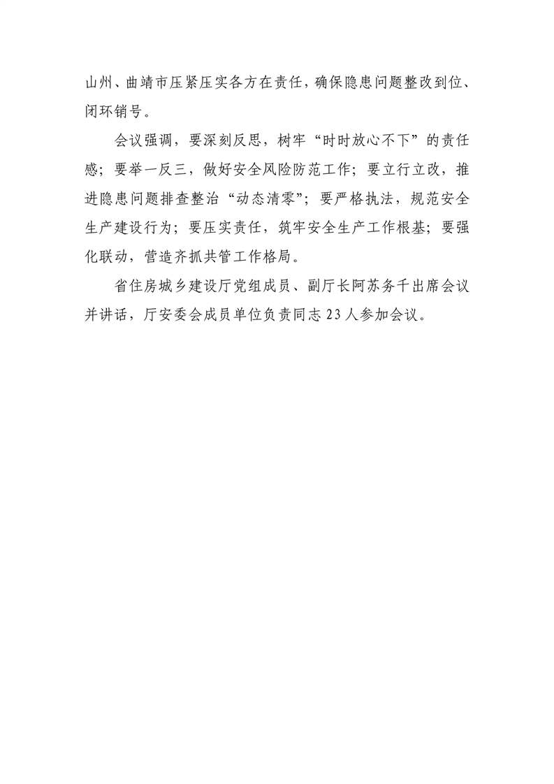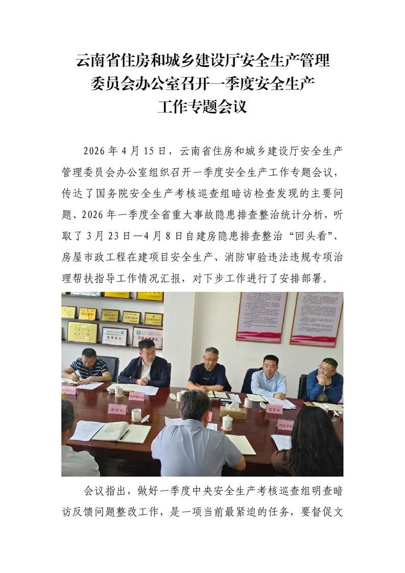 云南省住房和城乡建设厅安全生产管理委员会办公室召开一季度安全生产工作专题会议