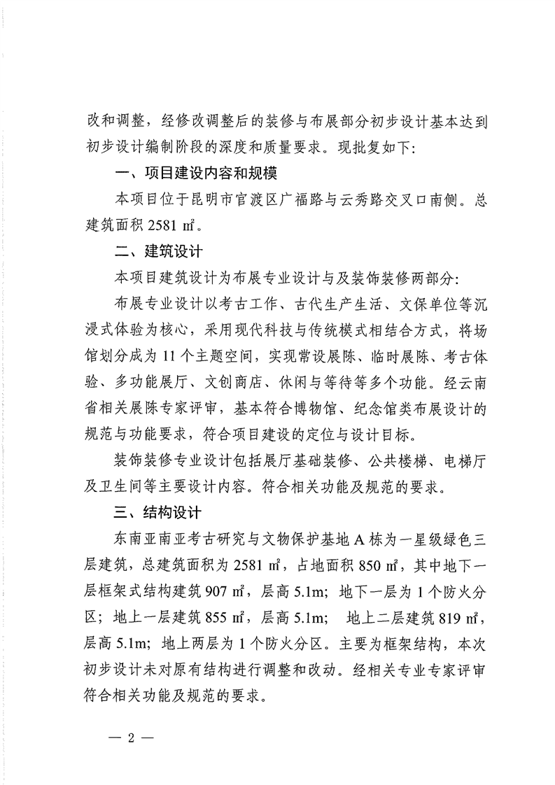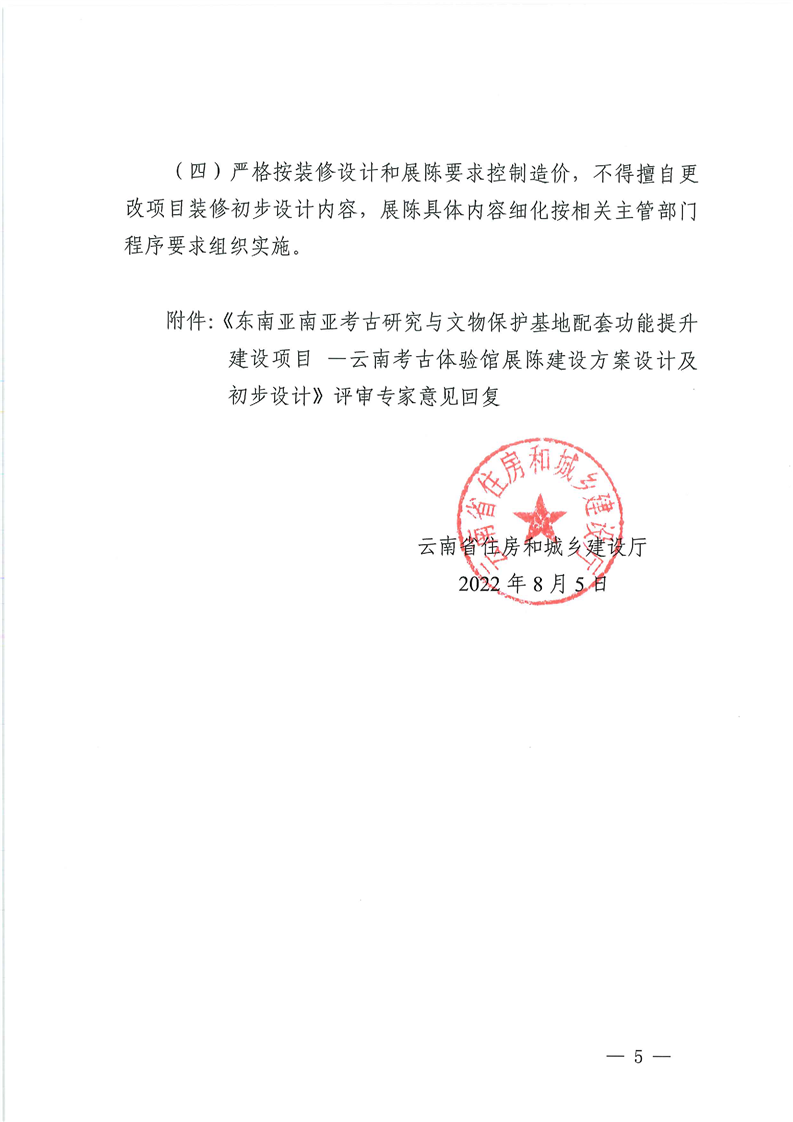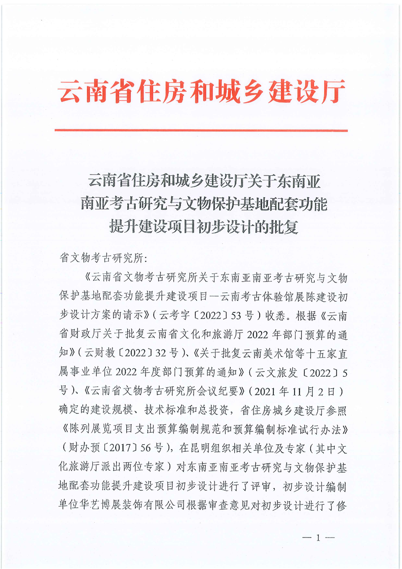云南省住房和城乡建设厅关于东南亚南亚考古研究与文物保护基地配套功能提升建设项目初步设计的批复