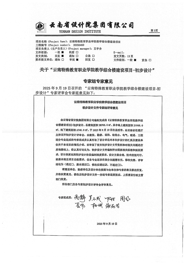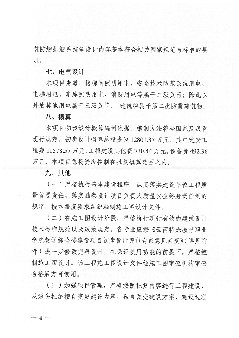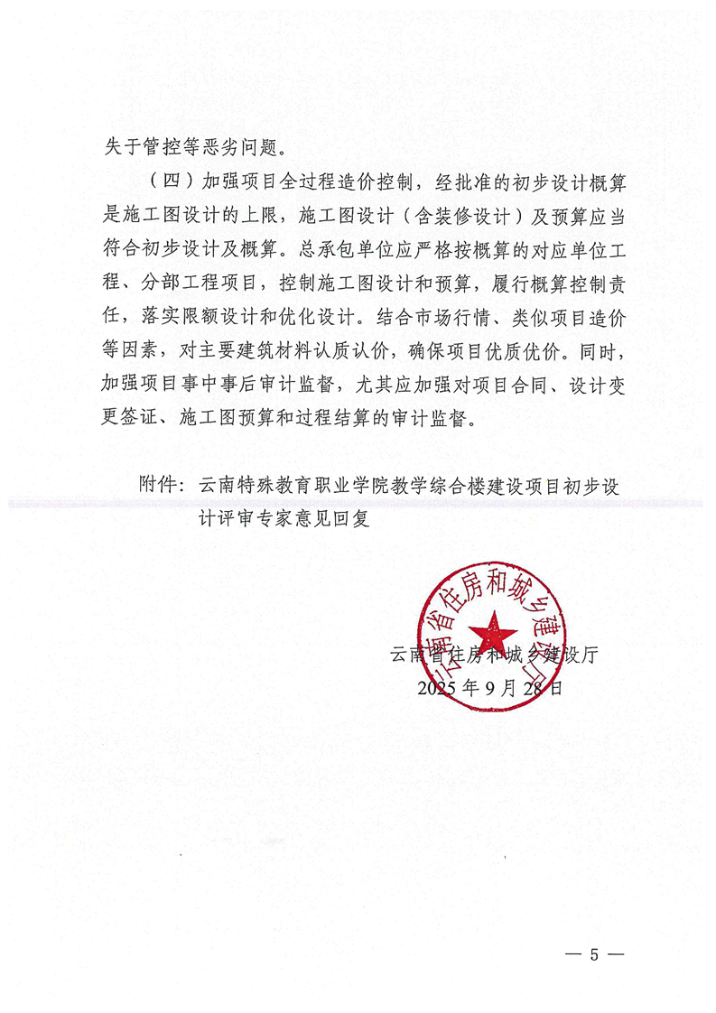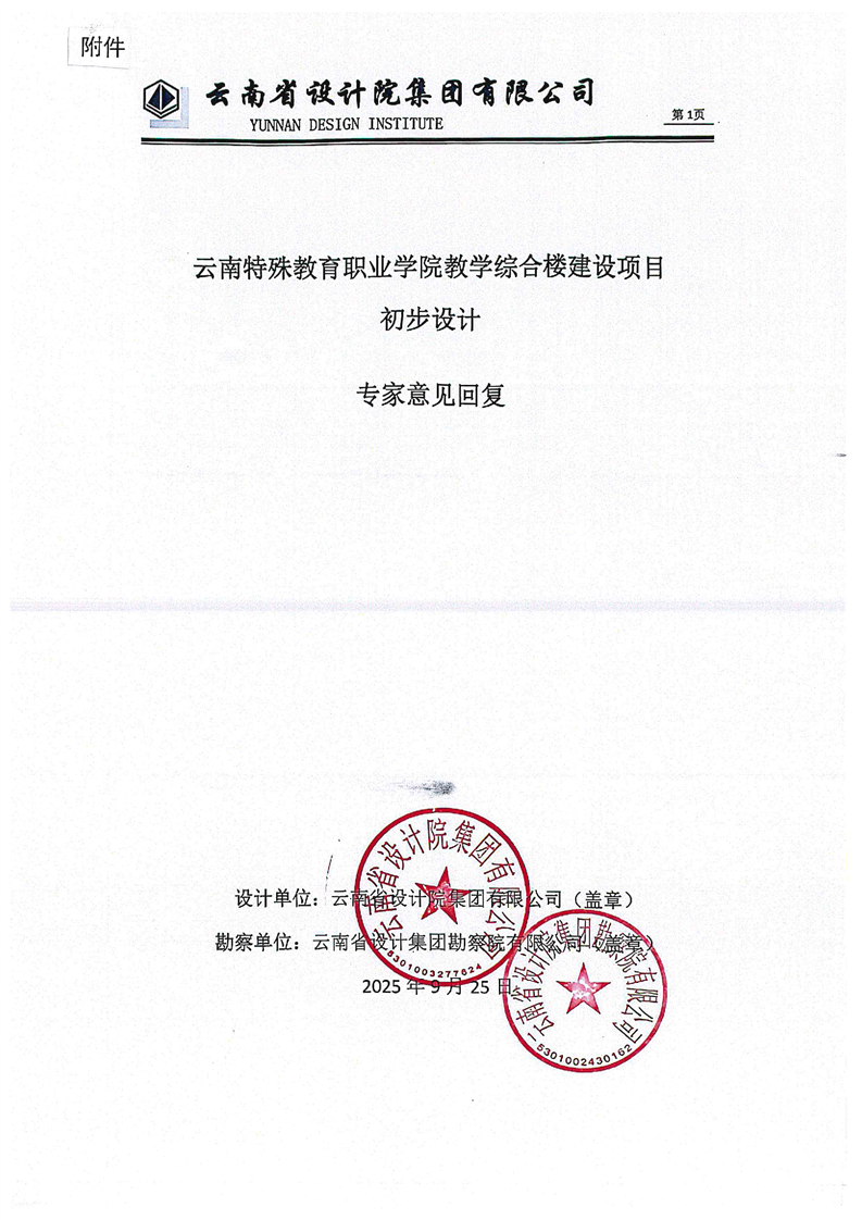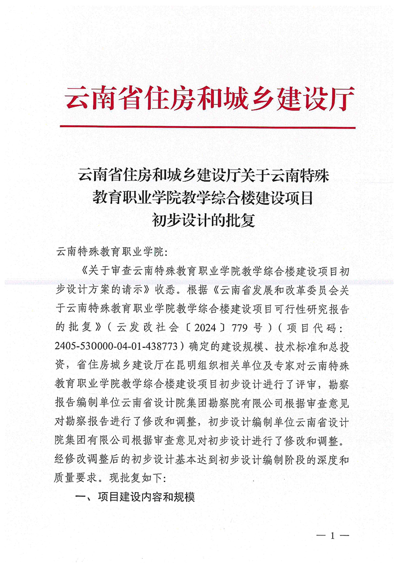 云南省住房和城乡建设厅关于云南特殊教育职业学院教学综合楼建设项目初步设计的批复