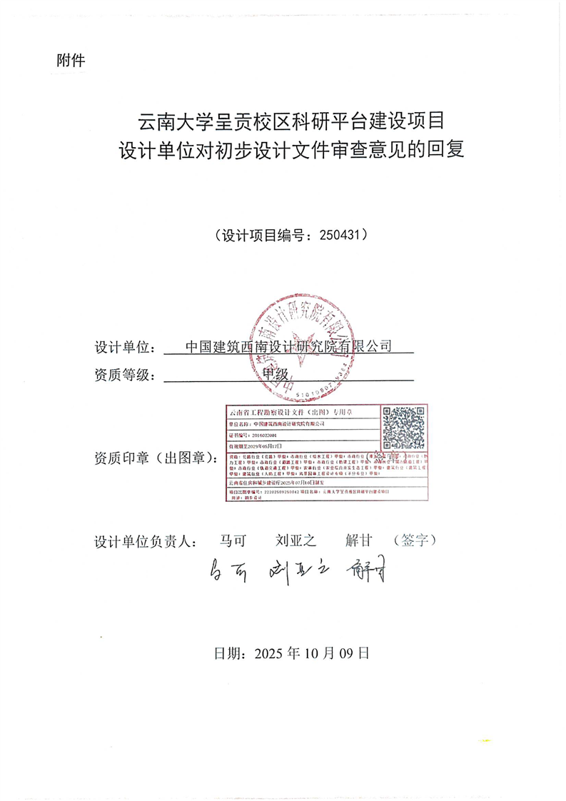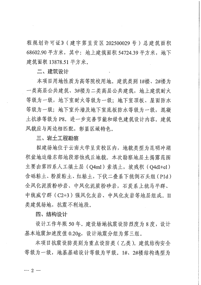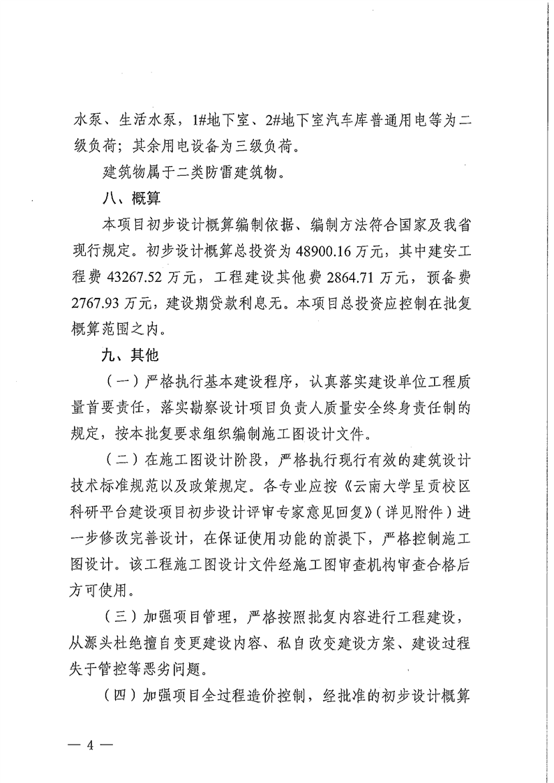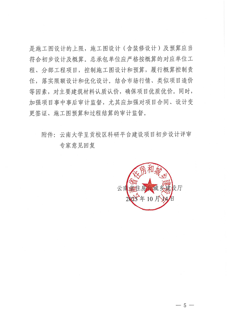 云南省住房和城乡建设厅关于云南大学呈贡校区科研平台建设项目初步设计的批复