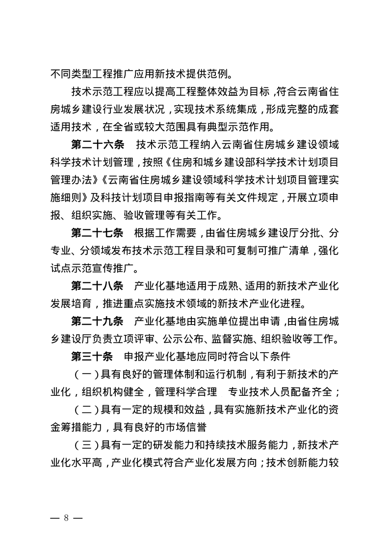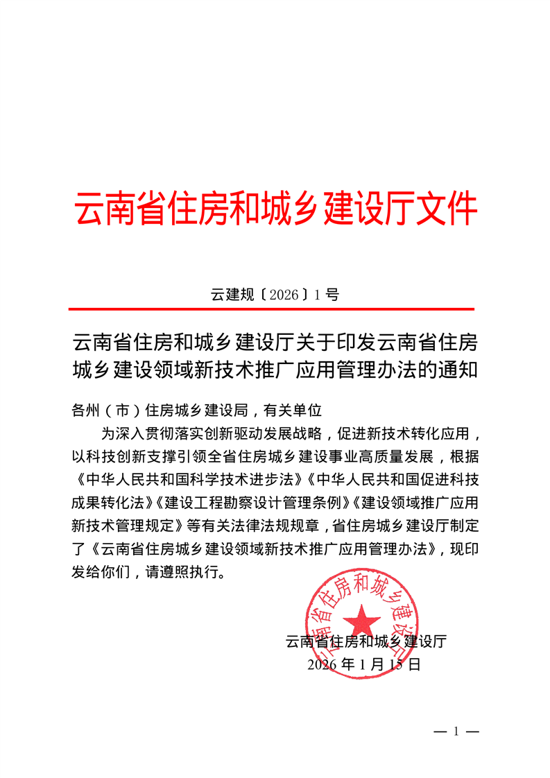 云南省住房和城乡建设厅关于印发云南省住房城乡建设领域新技术推广应用管理办法的通知