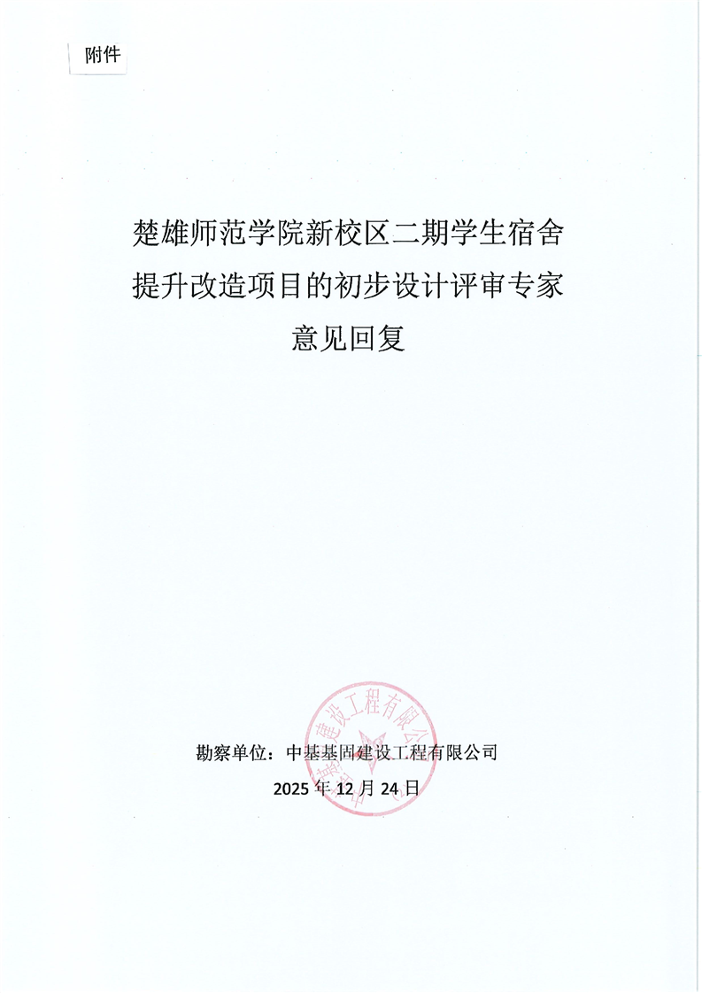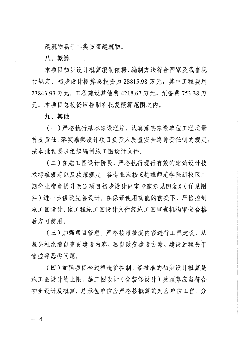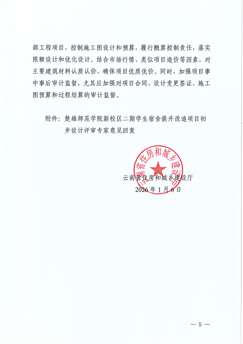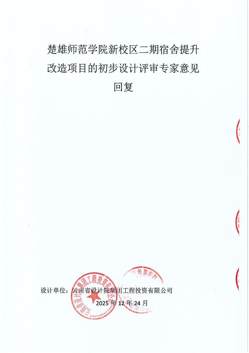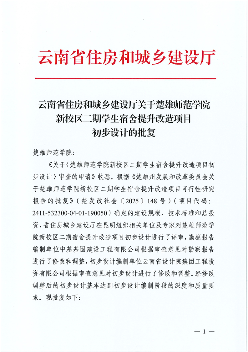 云南省住房和城乡建设厅关于楚雄师范学院新校区二期学生宿舍提升改造项目初步设计的批复