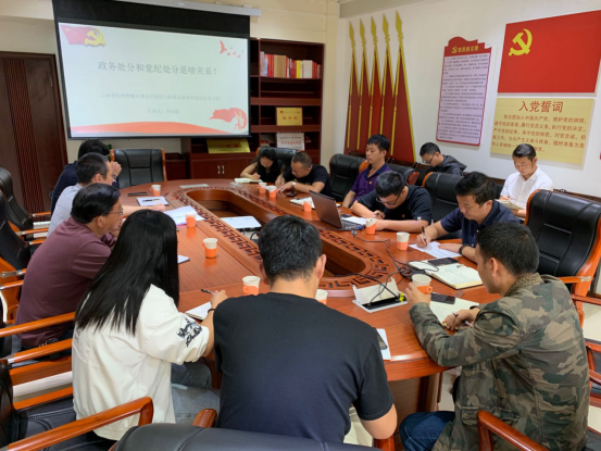 正值中秋、国庆来临之际,为进一步强化党风廉政建设,切实增强支部和处室同志的廉洁自律意识,落实党章党规和中央八项规定精神。2020年9月17日,科技与标准定额处和技经室党支部召开党员大会,举办主题党日活动。支部书记马素晔同志开展了节前廉政提醒谈话,带头筑牢拒腐防变的思想防线。李星皓同志以《政务处分和党纪处分是什么关系》为题作了党课分享。